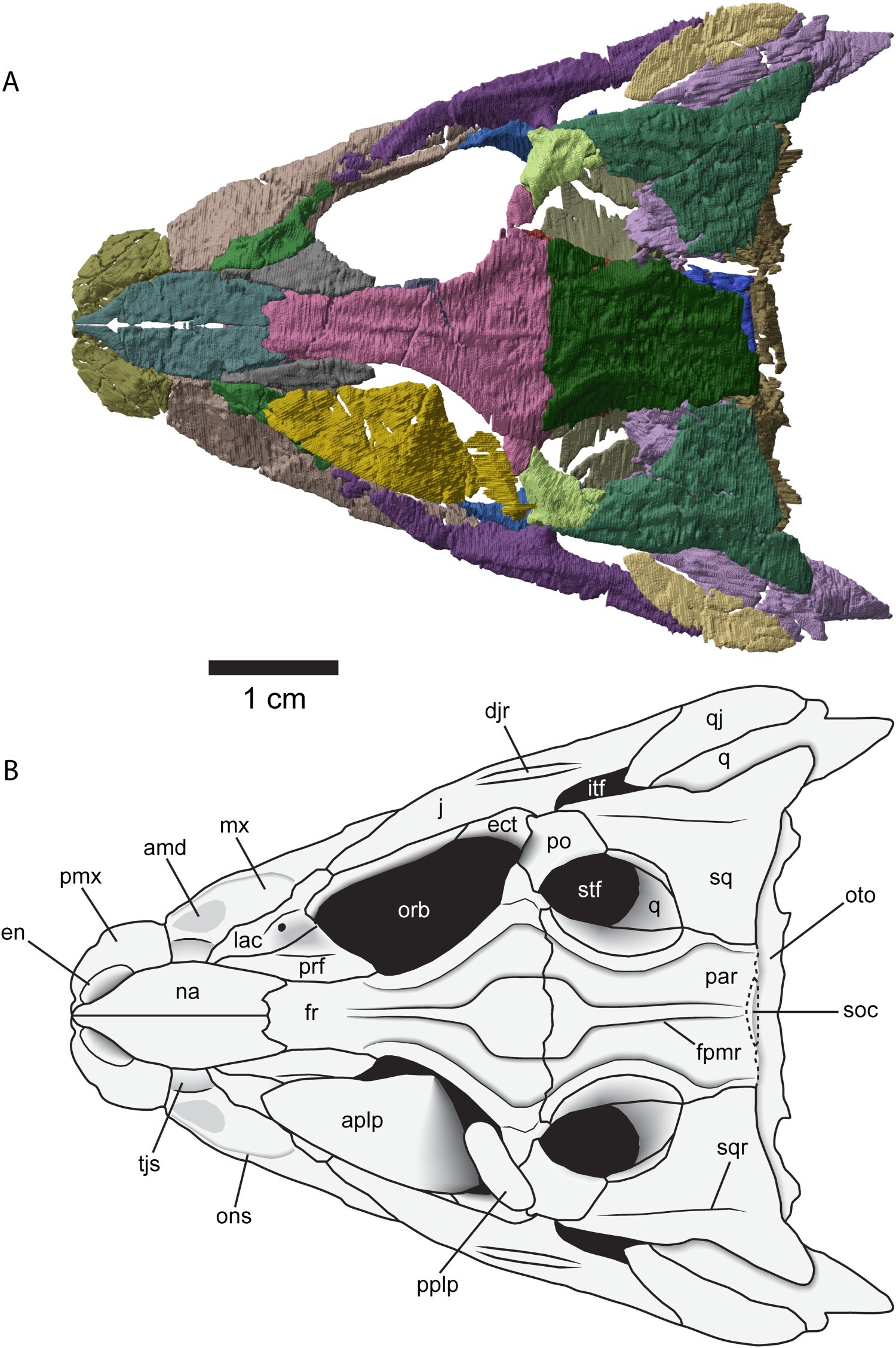 Allen y Johnson recuperaron fragmentos de hueso de casi todas las partes del cuerpo del animal, incluyendo extremidades, vértebras, mandíbula y un cráneo de 50 milímetros de largo. Debido a que los fragmentos eran diminutos y excepcionalmente frágiles, los estudiantes no intentaron reconstruirlos físicamente. En su lugar, los sometieron a una serie de tomografías computarizadas, incluyendo algunas en el Laboratorio de Investigación Subzero de la MSU. Allen estima que dedicó más de 100 horas a colorear los cortes digitales en 2D de los segmentos que produjeron las tomografías, un proceso necesario para distinguir visualmente los huesos de las rocas en las que estaban incrustados.